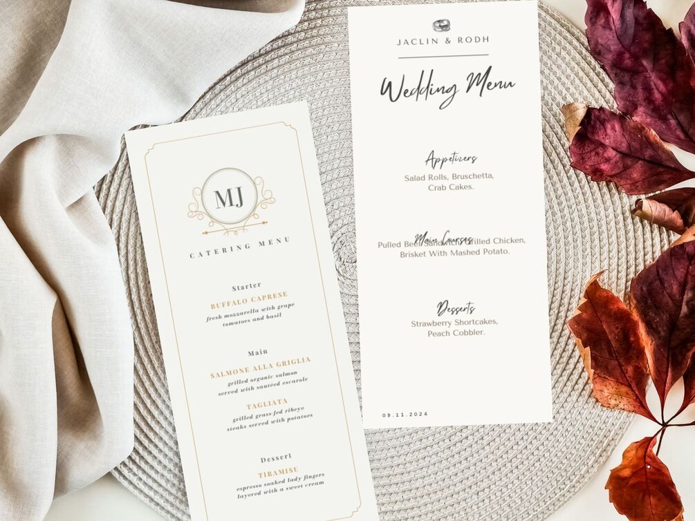4"x9" Wedding Menu Canva Template (downloadable in JPEG, PDF and PNG formats)
